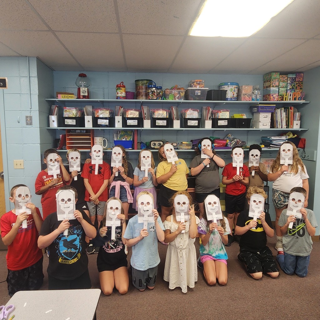 Gearing up for Halloween, 3rd graders learned about the skull on Friday and created a mask of the skull that has a movable jaw!